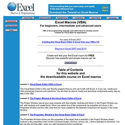 Excel is supplied with the Visual Basic Editor for modifying and creating macros and for creating user defined forms. Microsoft Excel VBA Free Training Manual Author: Ireneg Subject: Microsoft Excel VBA Free Training Manual Keywords: ... Access Full Source